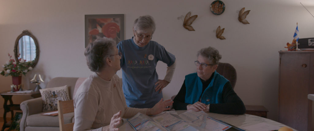 Les premières neiges tombent sur le Québec. À l’aube de la disparition de leur petite communauté de religieuses, les Sœurs Auxiliatrices commencent ce qui deviendra le tri d’une vie — une vie de luttes. Ces vaillantes militantes tout-terrain, qui ont foi en Dieu, mais pas en une Église dominée par des hommes, ont derrière elles des années d’engagement pour les droits des femmes, la justice sociale et la solidarité internationale. Un précieux matrimoine, en somme, que se préparent à léguer Gisèle, Marie-Paule, Nicole, Suzanne et leurs sœurs. Entre appréhension de la mort, francs éclats de rires et repas arrosés, ces femmes, dignes et libres, vivent profondément le sens de la sororité. Jusqu’au bout.